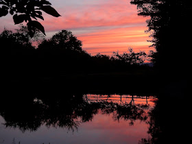 The phoebes nesting by the back door of the old mudroom have been incredibly busy from sunrise to sundown feeding four chicks. Speaking of sunrises, there was a brilliant red one this morning sometime between four and five o’clock.