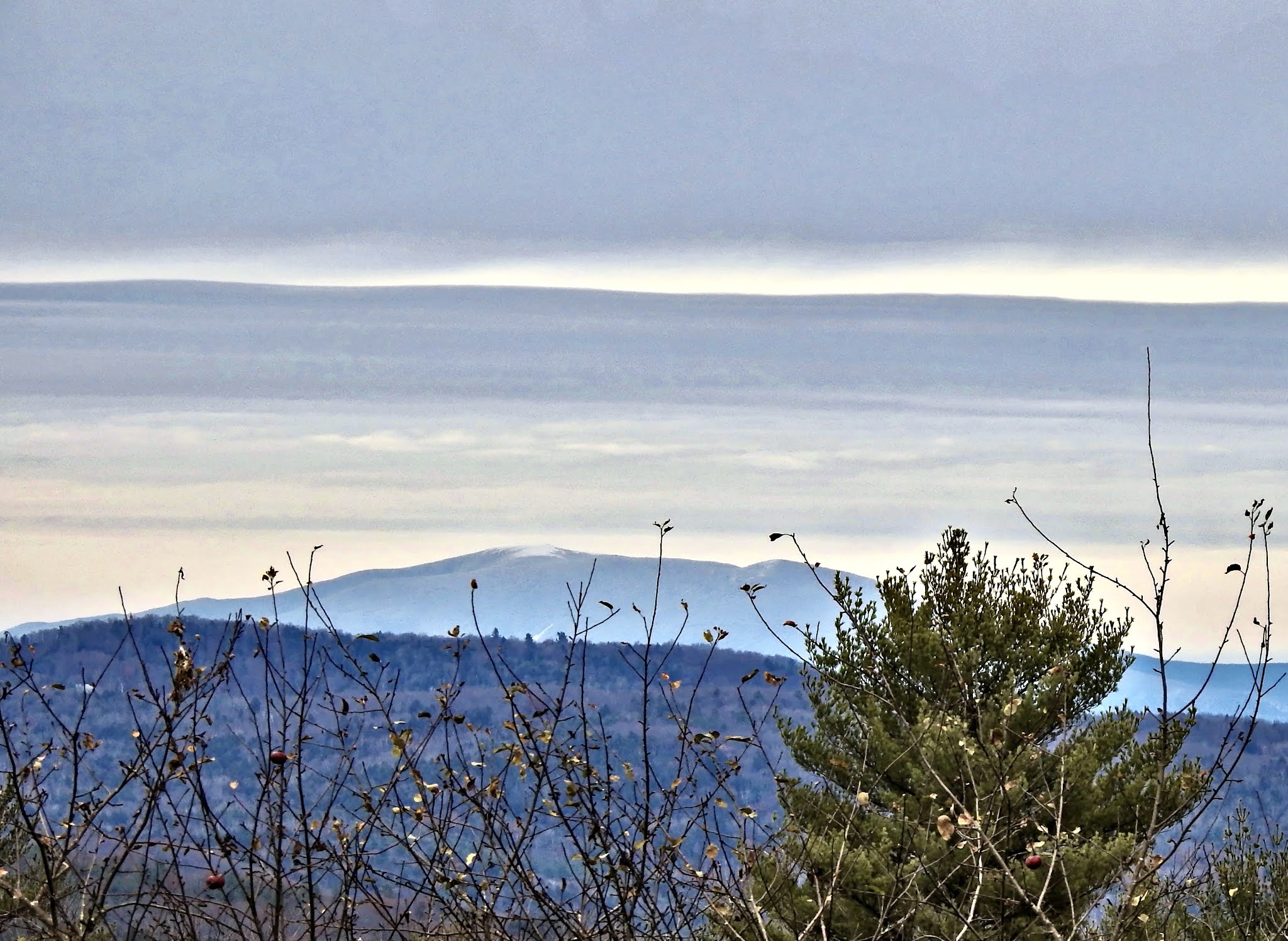 11-15-21 VERMONT: First snow of the year yesterday, up to a half inch in the deepest spots, all gone by afternoon. We have been here for a few days after an easy trip up. The lowest temps have only been as low as the upper 20’s and some perennials are still green near the house.