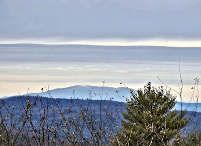 Uphill above the upper pond. This view is only available when the leaves are down, but before the snow. When it's snow covered, it's just a white blanket.