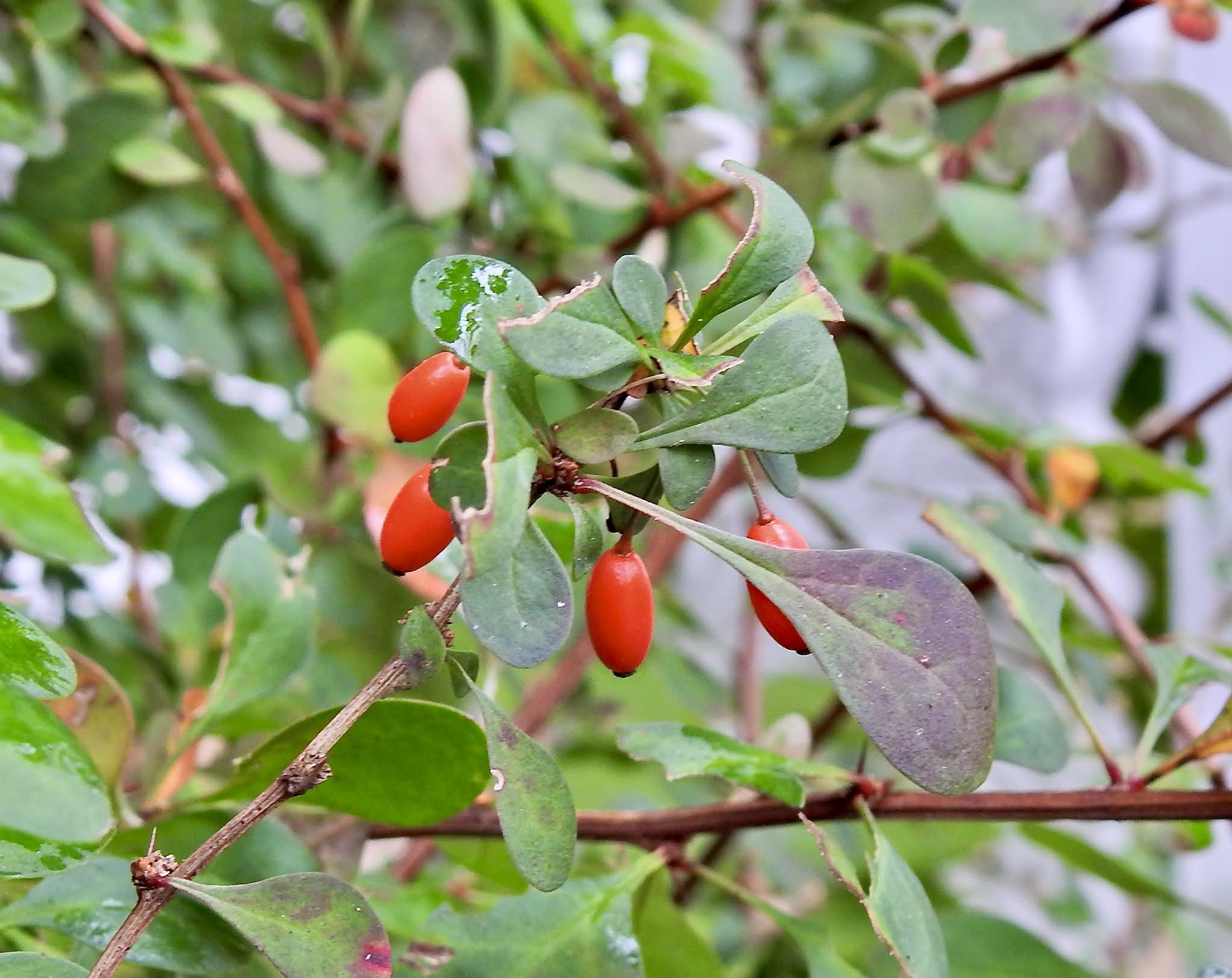 I have lots more berries and fruit to show. It has occurred to me that the point of the colors of the ripe fruit is to attract birds and other pollinators. The fruit is eaten and then pooped out with a drop of fertilizer some place else. The run through the GI tract is sometimes necessary to activate the seeds. Most fruits are green before they’re ripe so that they blend in with the leaves of the tree or shrub and don’t get eaten too soon.